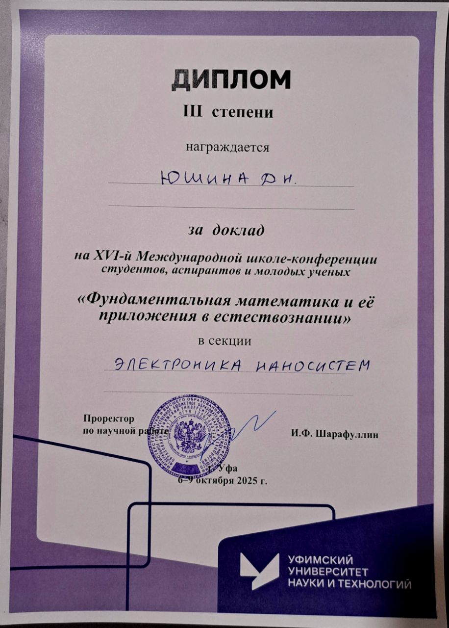 Поздравляем Дарью Юшину и ее научного руководителя — кандидата физико-математических наук, преподавателя Мансафа Масхутовича Таюпова — с этим значимым достижением и желаем им дальнейших успехов в научной стезе!