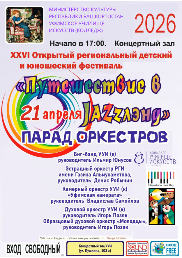 30 апреля 2026 года приглашаем в Концертный зал Уфимского училища искусств на отчетный концерт предметно-цикловой комиссии «Вокальное искусство» «Вдохновленные музыкой»! Начало в 13 часов 15 минут. Вход свободный. Добро пожаловать!