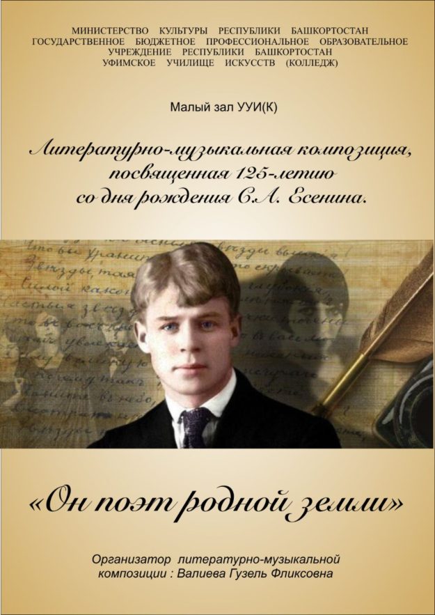 Представляем вашему вниманию литературно-музыкальную композицию «Он поэт родной земли!», посвященную 125-летию со дня рождения русского поэта ХХ века Сергея Александровича Есенина