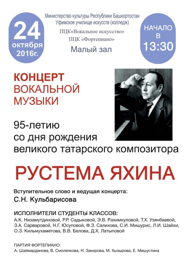 24 октября 2016 г. прошел концерт вокальной музыки (Фотоотчет) НовостиАвтор: Уфимское училище искусств(колледж)26.10.2016