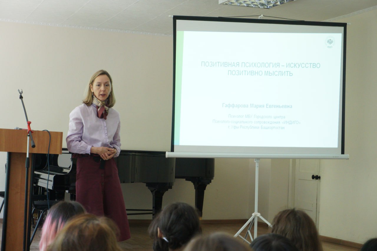 26 мая 2025 года в Малом зале Уфимского училища искусств состоялось лекционно-тренинговое мероприятие на тему «Позитивная психология – искусство позитивно мыслить», посвященное формированию позитивного мышления и освоению методов совладания со стрессом.