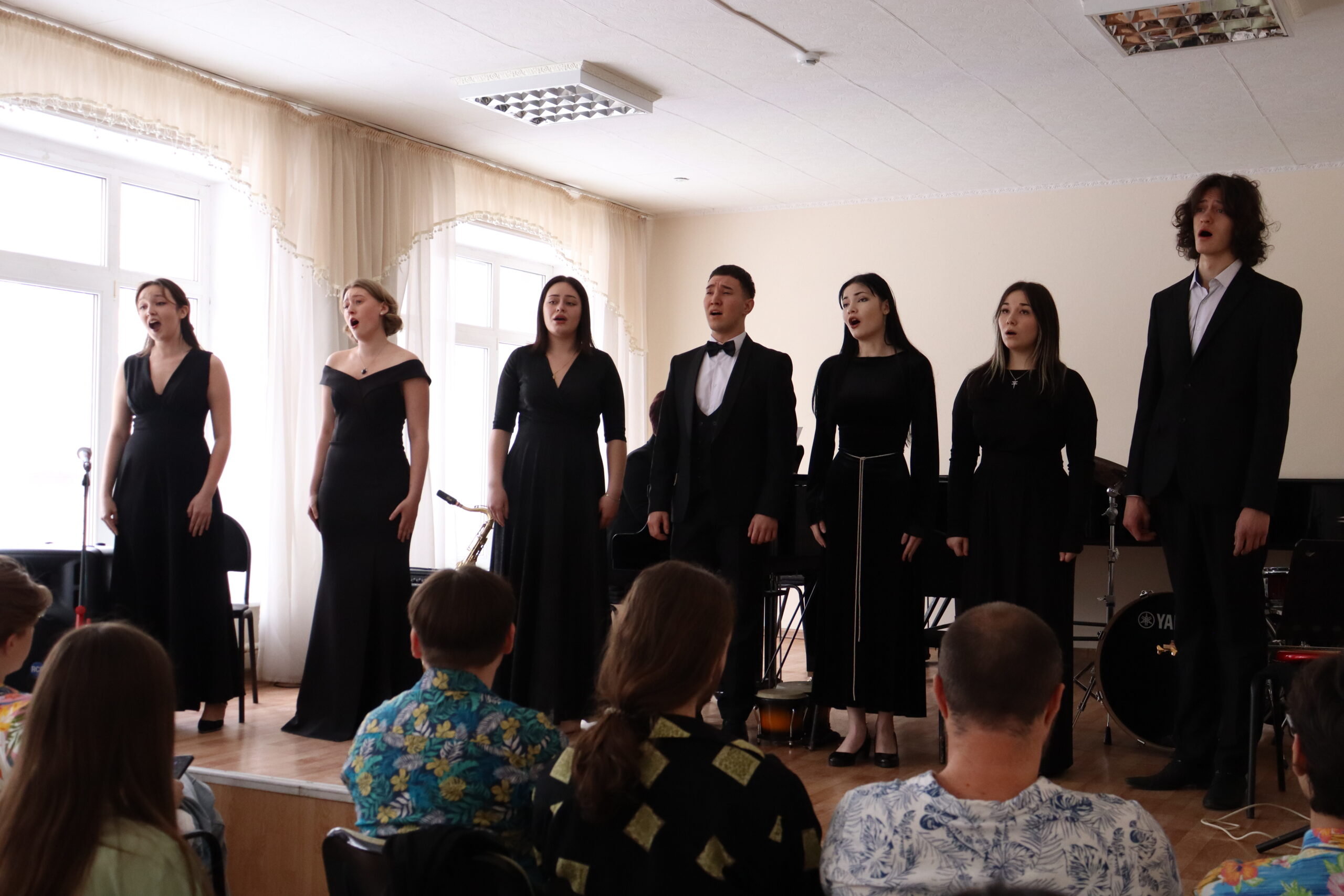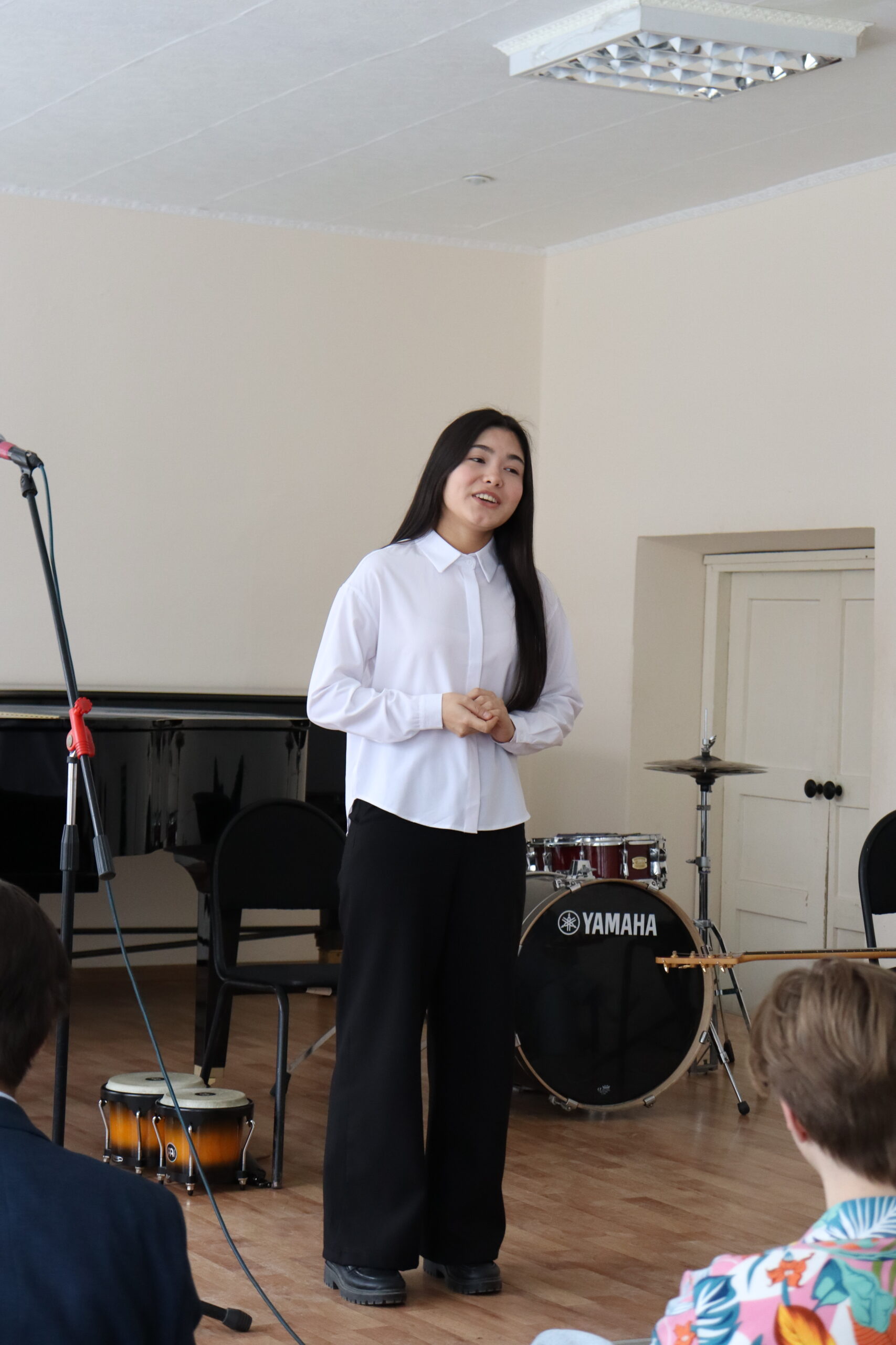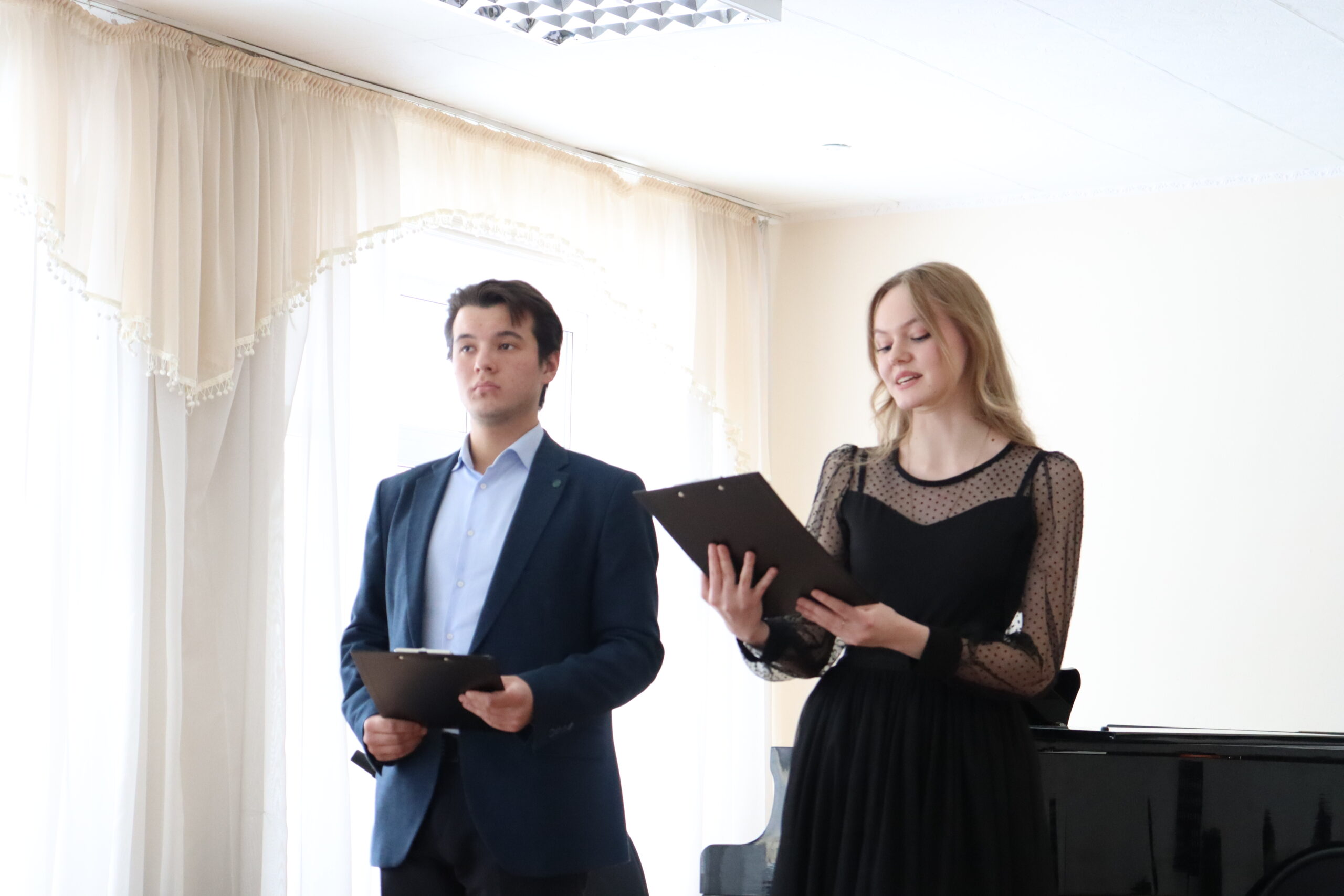 Вели мероприятие: студент 4 курса специальности «Живопись» Салим Фаттахов и студентка 3 курса специальности «Хоровое дирижирование» Полина Белогузова.