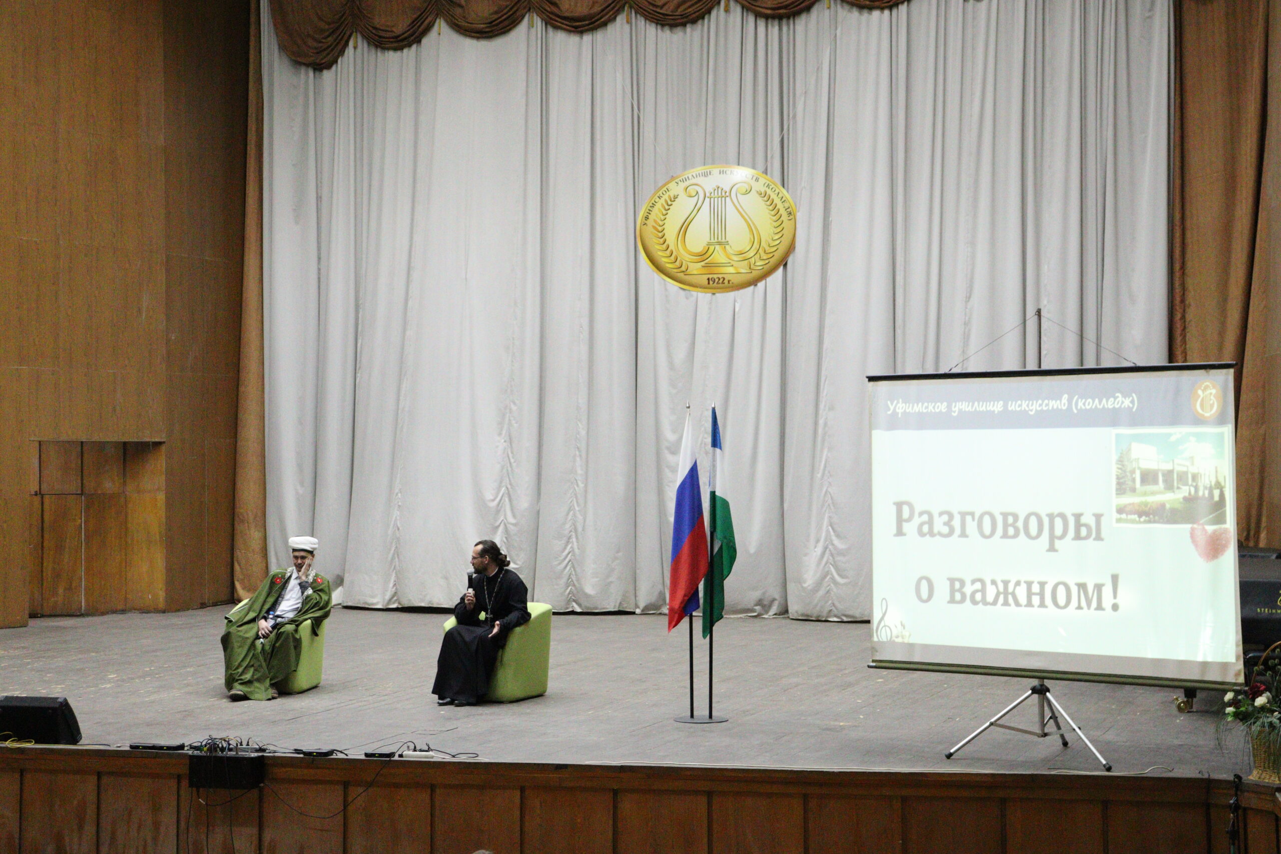 13 апреля 2026 года в Уфимском училище искусств состоялось лекционное мероприятие для студентов 1-4 курсов на тему «Профилактика деструктивных проявлений в молодежной среде», провели которое представители духовенства: имам-хатыб мечети «Ишан Зайнулла Расули» Центрального духовного управления мусульман России Ахмад-хазрат Ахмеров и руководитель миссионерского отдела Уфимской епархии Русской православной церкви, иерей Дионисий Ефимов.