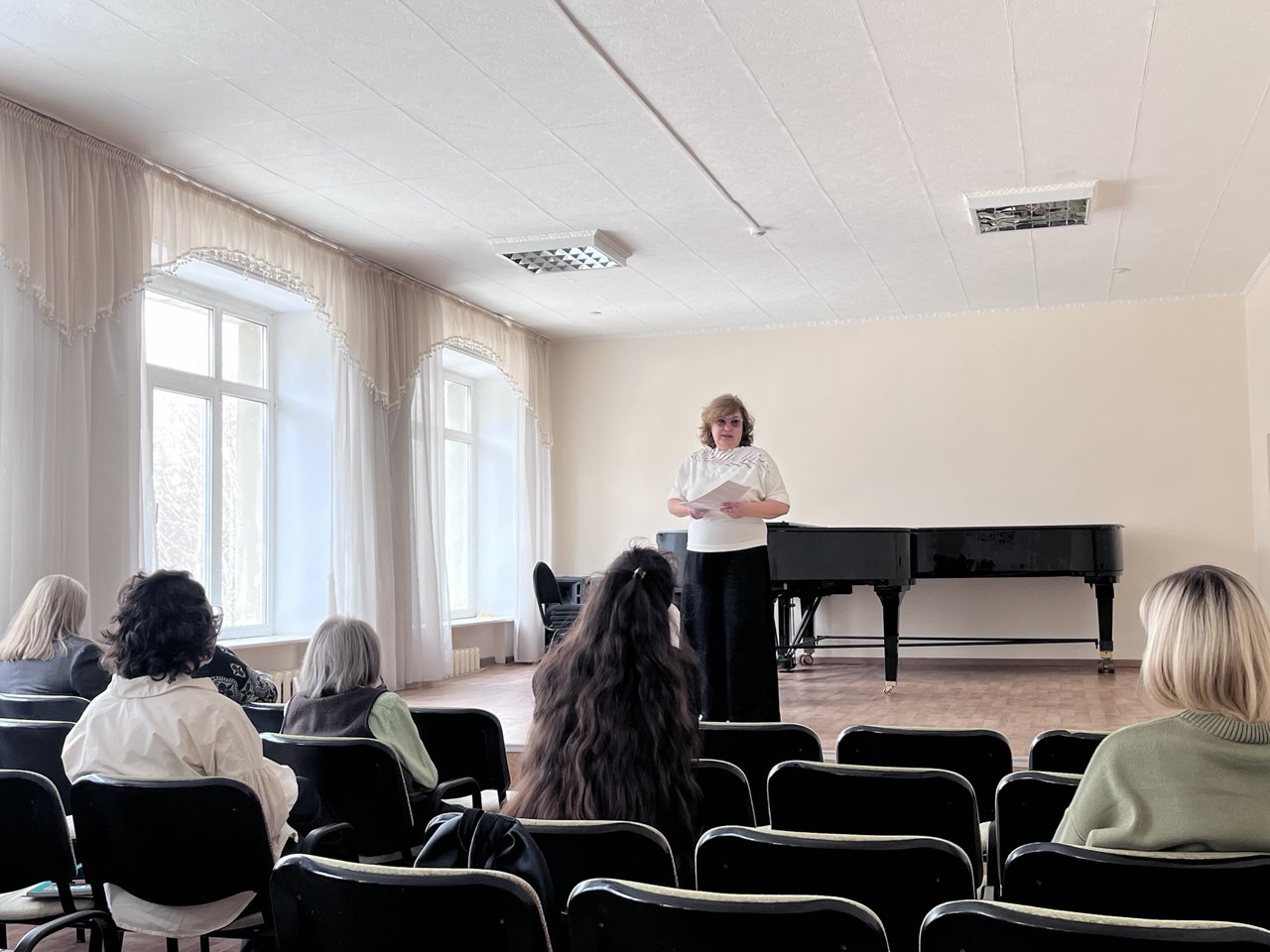 Параллельно с конкурсными испытаниями прошли курсы повышения квалификации для преподавателей ДМШ и концертмейстеров. Более 50 педагогов и концертмейстеров детских музыкальных школ собрались, чтобы обсудить самые актуальные вопросы первой ступени музыкального образования.