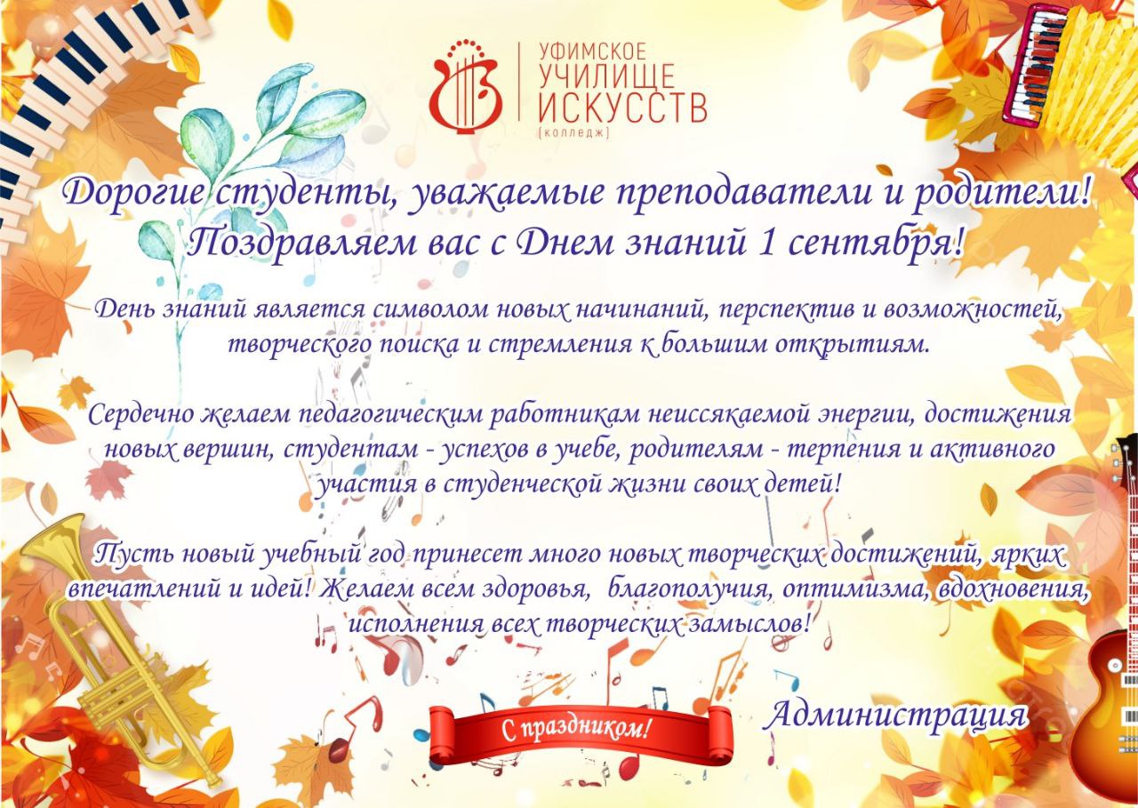 Дорогие студенты, уважаемые преподаватели и родители! Поздравляем вас с Днём знаний 1 сентября!