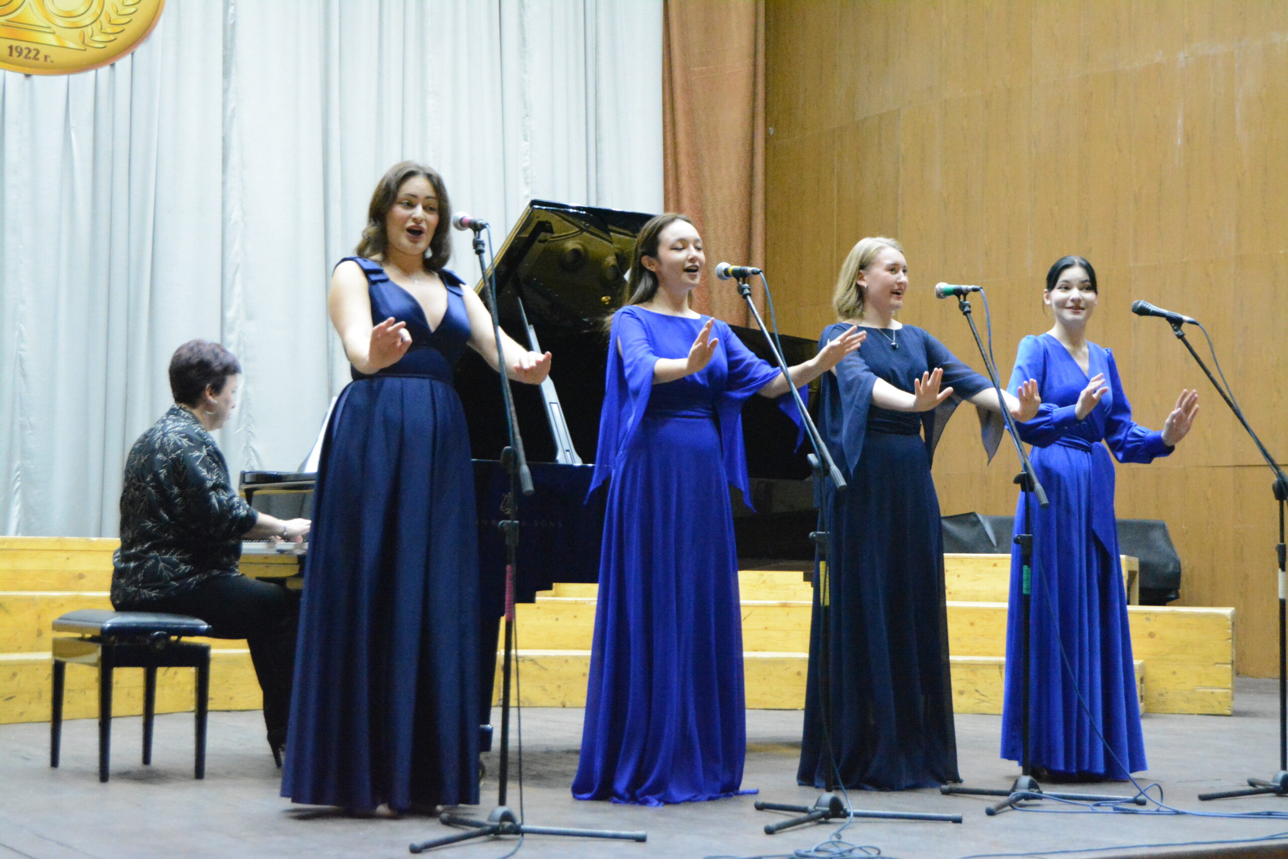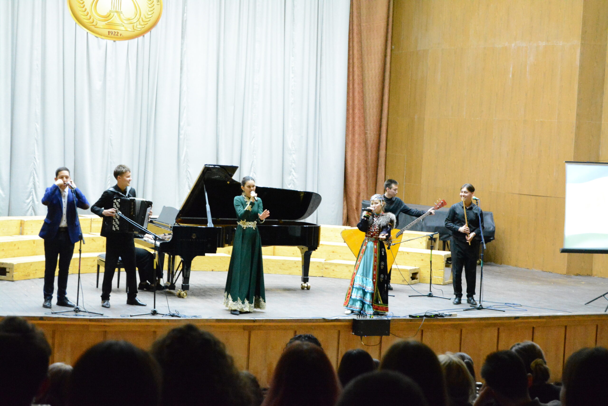 Завершили концертную программу обладатели Гран-при Всероссийского фестиваля «Российская студенческая весна», проходившего в г. Ставрополь, студенты 3 курса специальности «Музыкальное искусство эстрады» по виду «Эстрадное пение» Алсу Биккинина и Аиша Зиганшина в сопровождении этно-группы «Саптар».