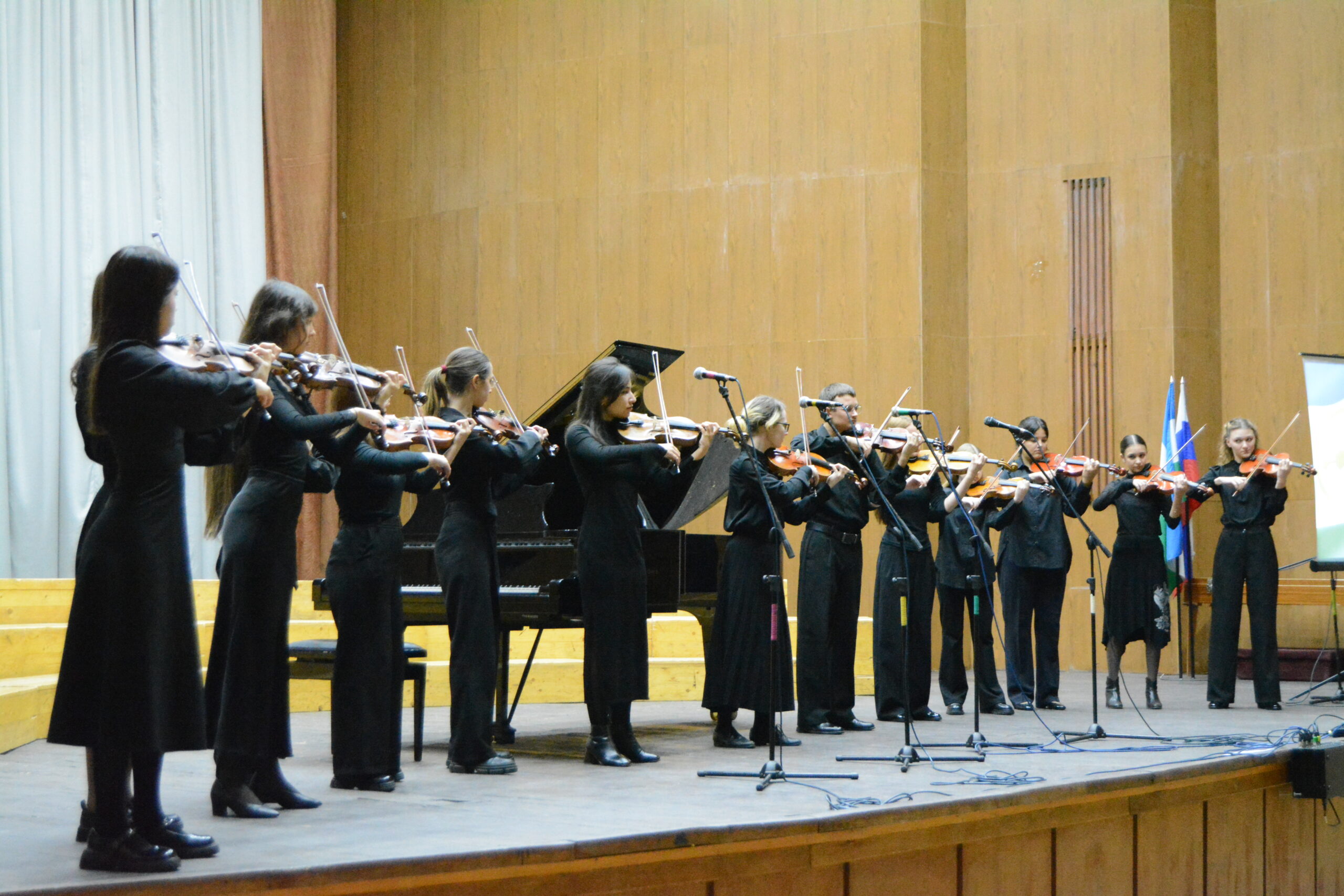 Праздничный концерт продолжили яркими музыкальными номерами студенты специальности «Инструментальное исполнительство»: по виду «Национальные инструменты народов России» – ансамбль кураистов Уфимского училища искусств (руководитель – Ринат Булатович Нурмухаметов); по виду «Оркестровые духовые и ударные инструменты» – Алан Коротков, студент 4 курса (класс преподавателя, заслуженного работника культуры Республики Башкортостан Игоря Петровича Позяка, концертмейстер – Карина Рафаэлевна Мезецева); по виду «Оркестровые струнные инструменты» – ансамбль скрипачей Уфимского училища искусств (руководитель – заслуженный работник культуры Республики Башкортостан Владислав Анатольевич Самойлов, концертмейстер – Карина Рафаэлевна Мезенцева).