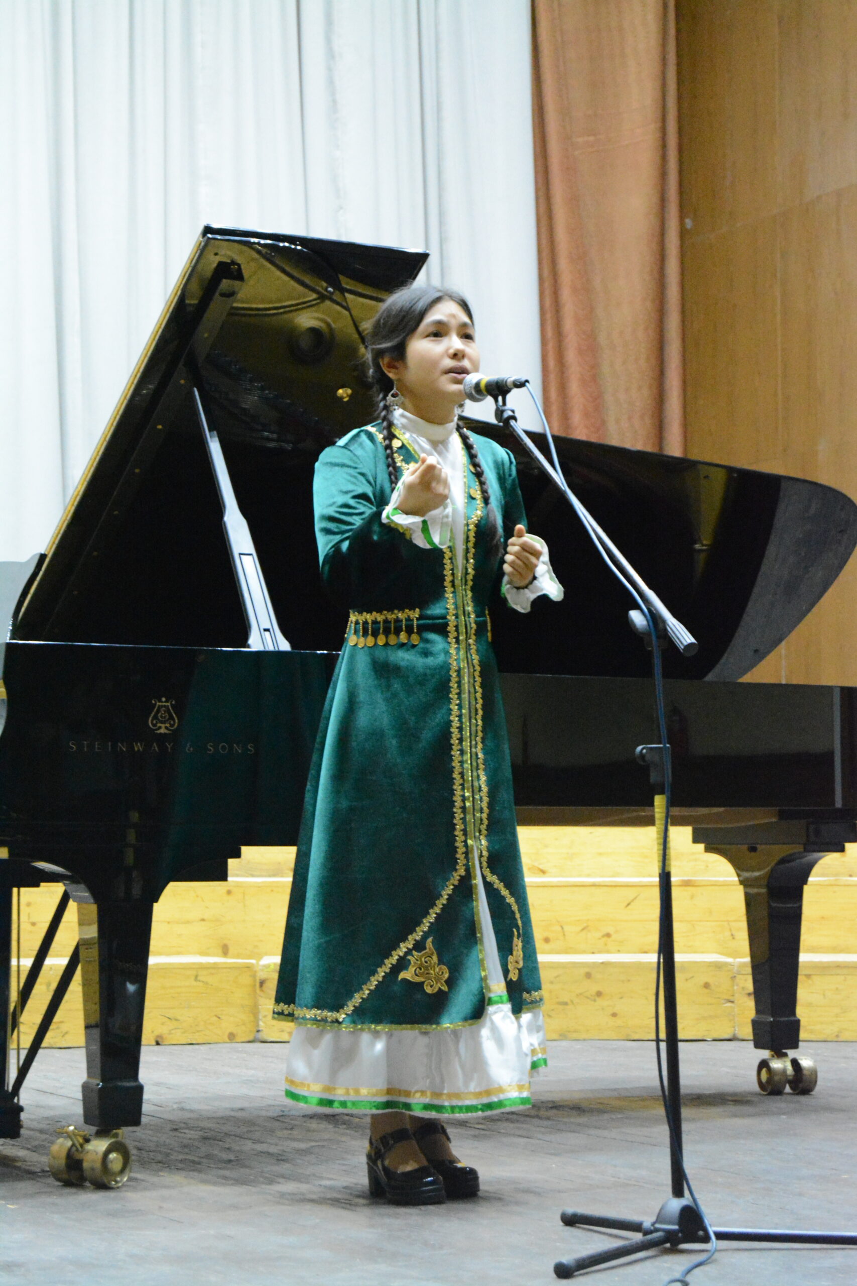 Стихотворение «Башкортостан» (Ю. Ильясова) прочла студентка 3 курса специальности «Инструментальное исполнительство» по виду «Национальные инструменты народов России» Фирдаус Мухаметова (руководитель – заслуженный работник образования Республики Башкортостан Зиля Гайсиевна Юлдыбаева).