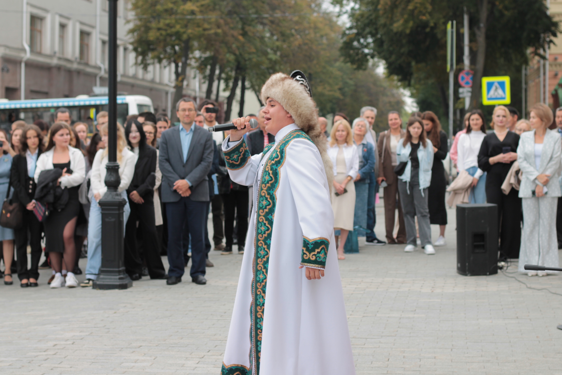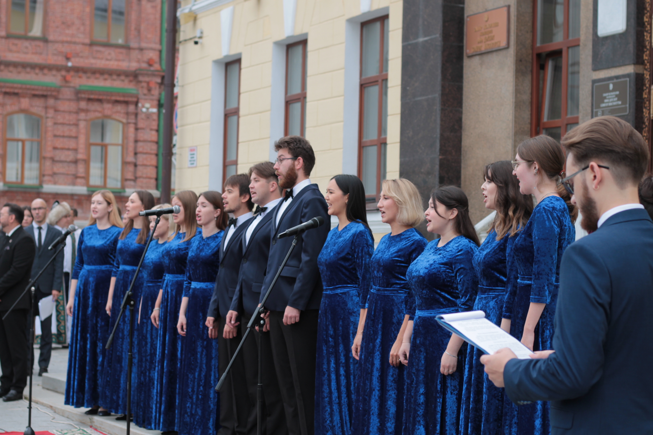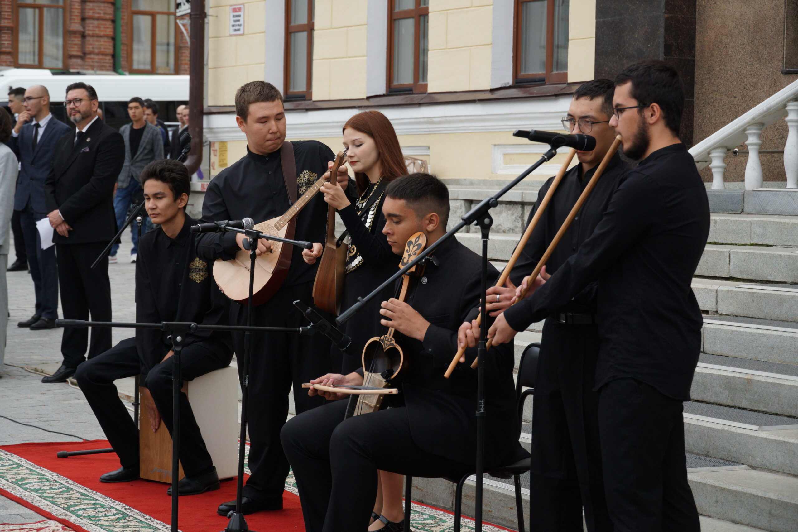 В честь студентов, начинающих свой профессиональный путь, студенты кафедры вокального искусства УГИИ им. З. Исмагилова исполнили студенческий гимн «Гаудеамус».