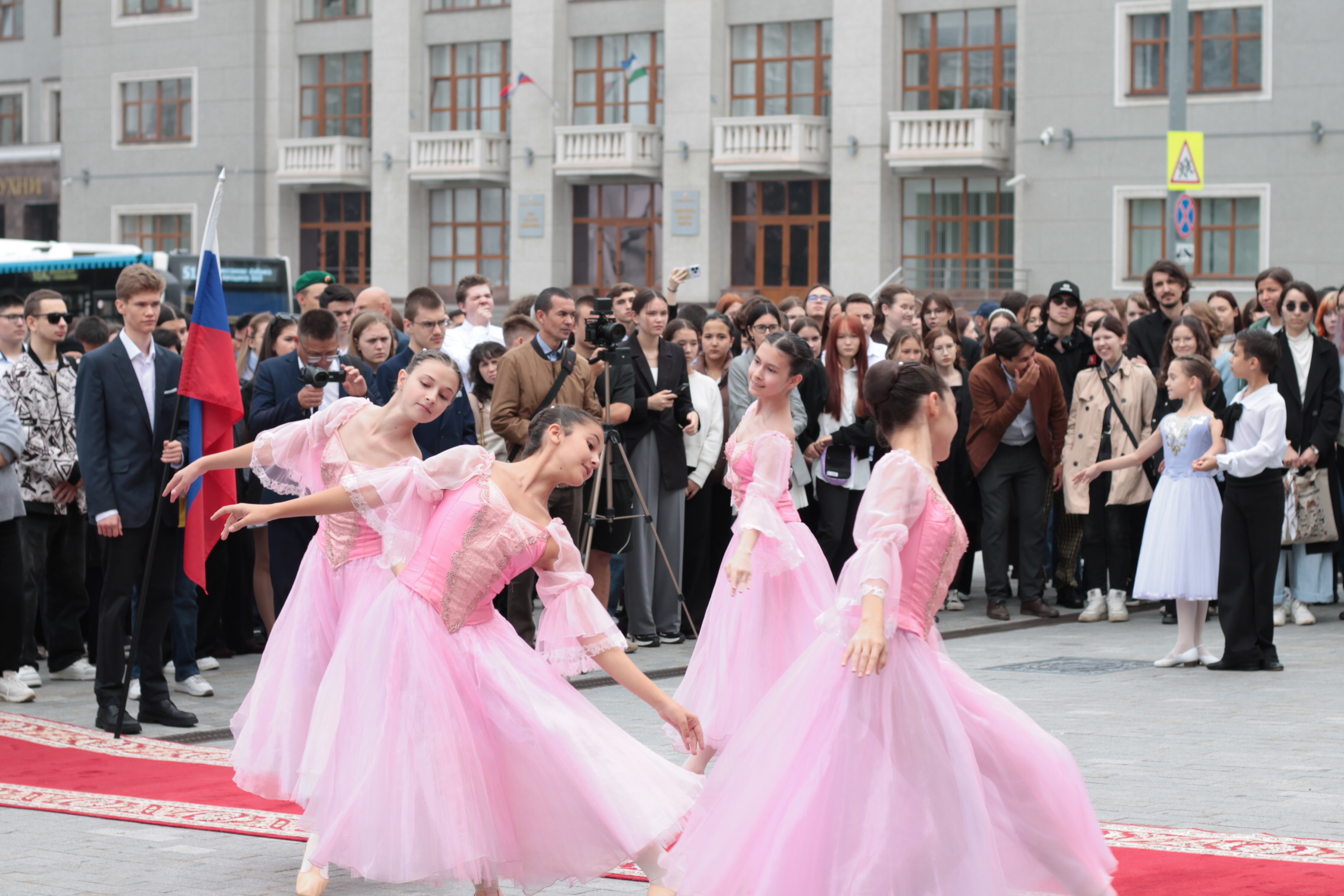 1 сентября 2025 года в продолжение праздничных мероприятий, посвященных началу 2025-2026 учебного года, студенты первого курса Уфимского училища искусств собрались на Советской площади г. Уфы на торжественной линейке вместе с первокурсниками Уфимского государственного института искусств им. З. Исмагилова, Башкирского хореографического колледжа им. Р. Нуреева, Среднего специального музыкального колледжа.