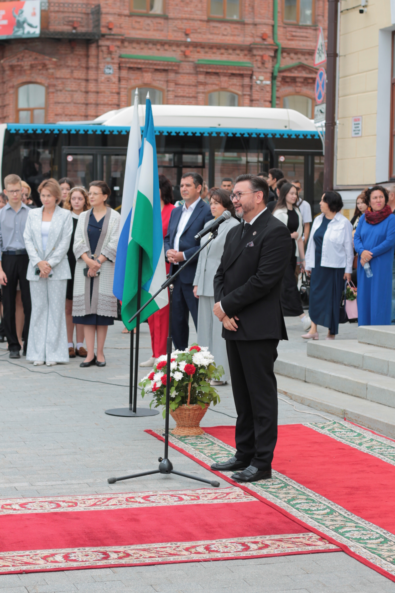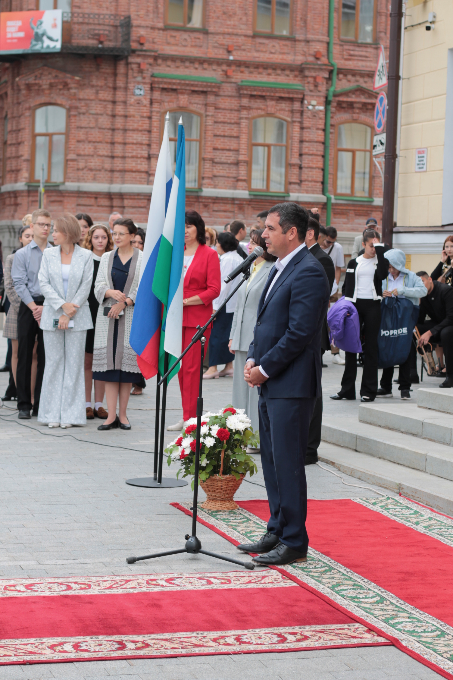 Состоялось торжественное вручение символического студенческого билета. К памятникам Героя Российской Федерации Минигали Мингазовича Шаймуратова и башкирского композитора Загира Гариповича Исмагилова были возложены цветы.