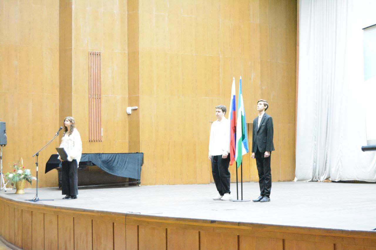 13 октября 2025 года в Уфимском училище искусств состоялось торжественное мероприятие, которое по традиции началось с церемонии, посвященной флагам и гимнам Российской Федерации и Республики Башкортостан.
