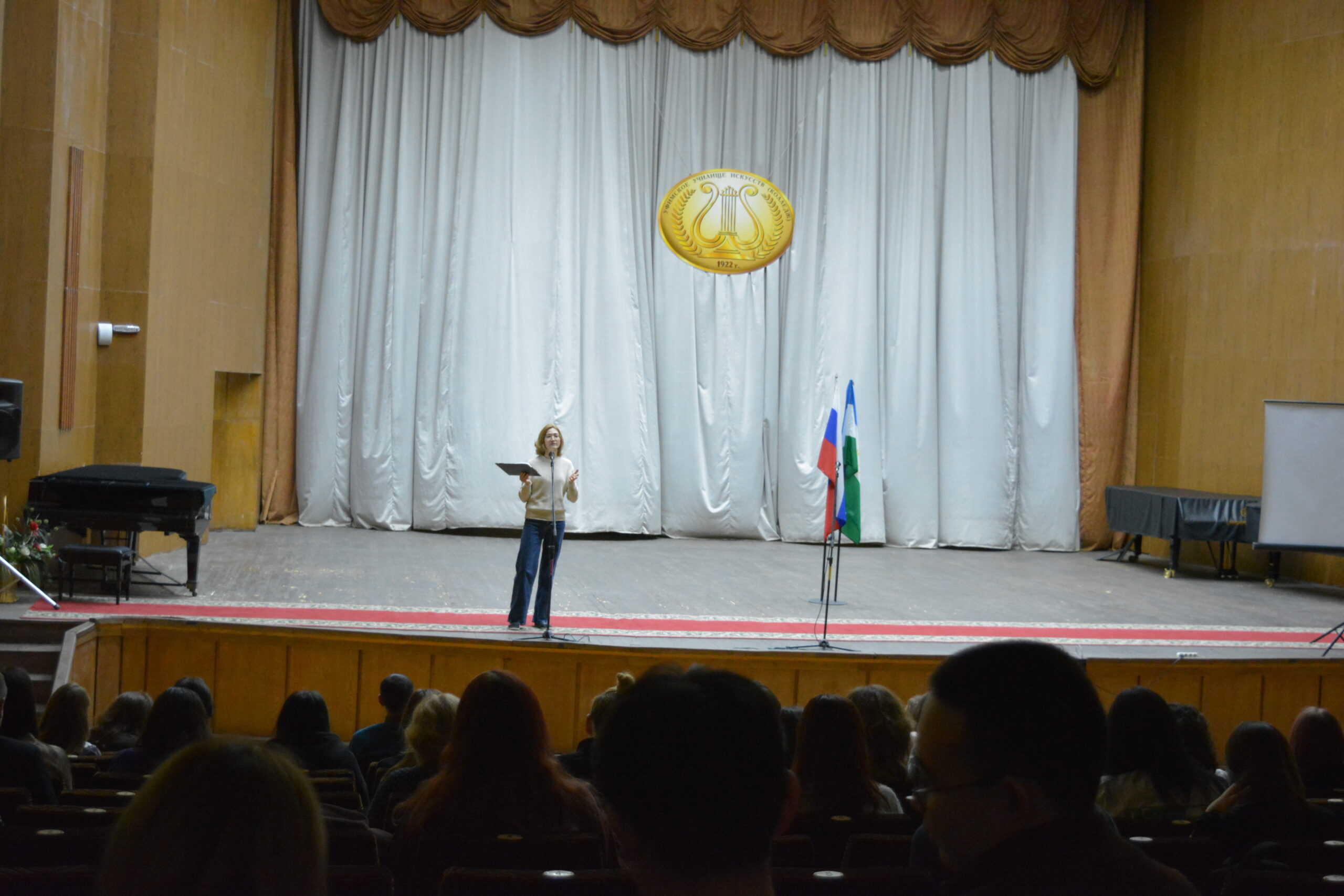 В завершение мероприятия ведущая, студентка 2 курса специальности «Вокальное искусство», Арина Кинзягулова пожелала всем успешной и продуктивной учебной недели.