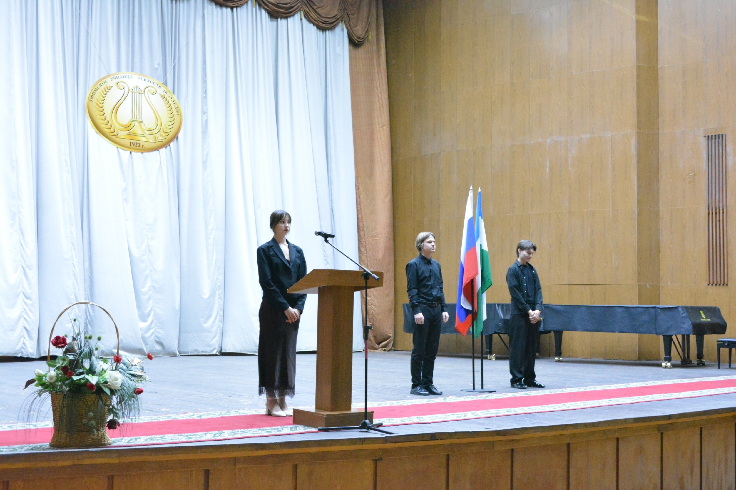 16 марта 2026 года в Уфимском училище искусств состоялось торжественное мероприятие, которое по традиции началось с церемонии, посвященной флагам и гимнам Российской Федерации и Республики Башкортостан. Почетное право выноса знамен было предоставлено студентам 2 курса специальности «Инструментальное исполнительство» по виду «Фортепиано» Даниле Ермишину и Ильнару Сафарову.
