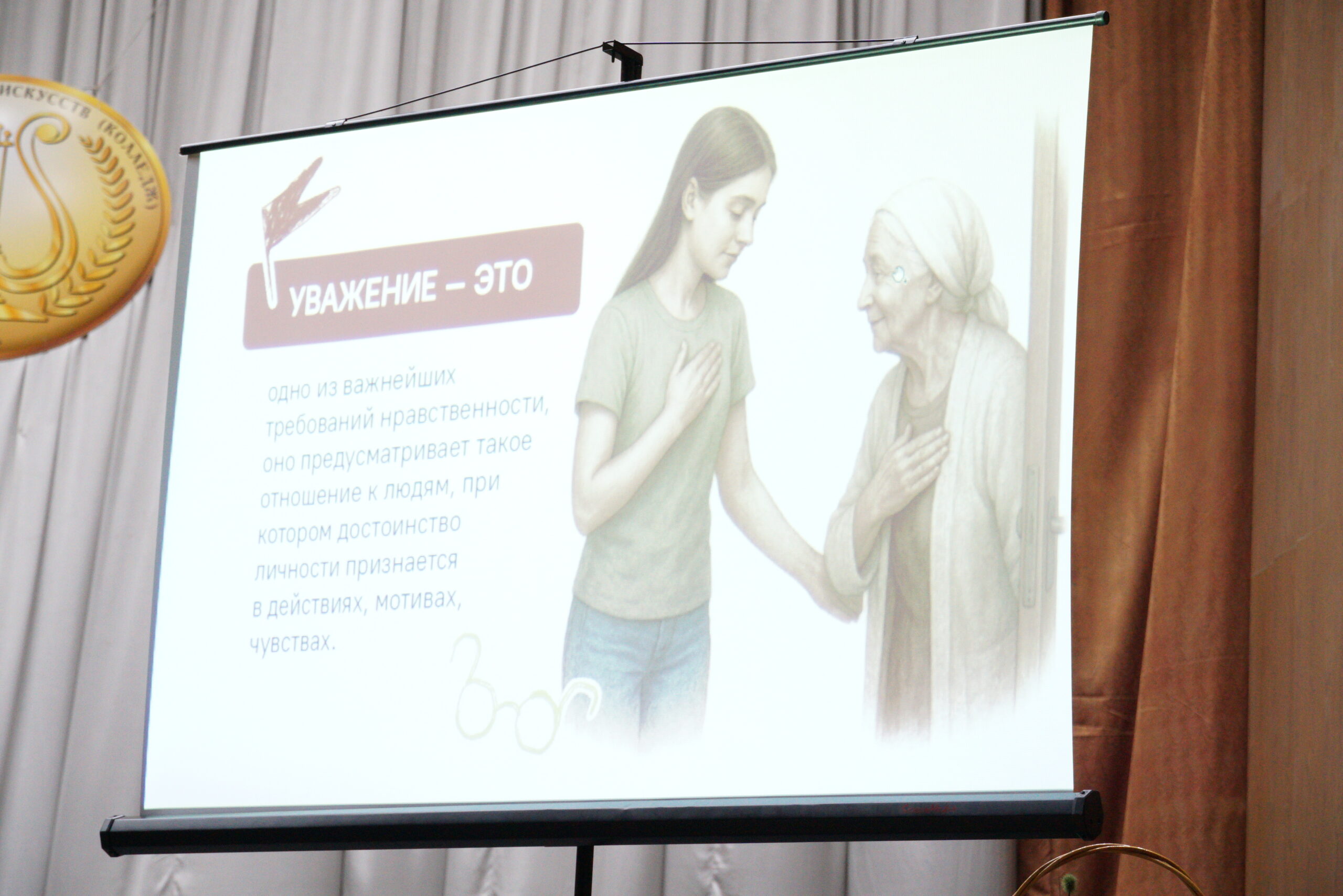 В ходе «Разговора о важном» рассматривалась тема «Что такое уважение?», позволяющая: сформировать у слушателей представления о значении уважения в человеческих взаимоотношениях, осознанное уважительное отношение к людям, результатам их труда, обществу, культуре и окружающей среде; повысить мотивацию к ответственному поведению и самосовершенствованию.