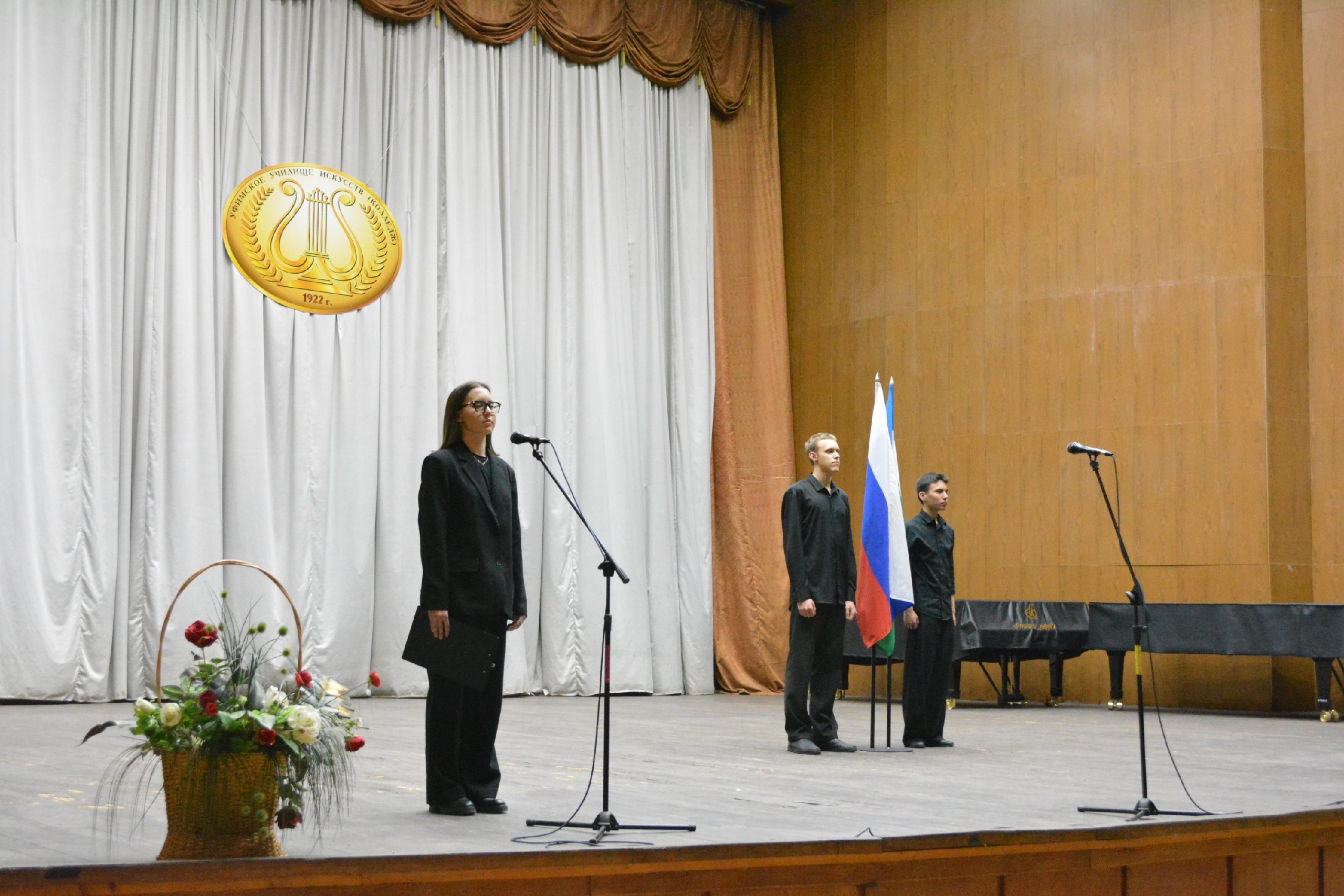 6 апреля 2026 года в Уфимском училище искусств состоялось торжественное мероприятие, которое по традиции началось с церемонии, посвященной флагам и гимнам Российской Федерации и Республики Башкортостан. Почетное право выноса знамен было предоставлено студентам 1 курса специальности «Инструментальное исполнительство» по виду «Оркестровые духовые и ударные инструменты» Аскару Галиуллину и Геннадию Ерастову.