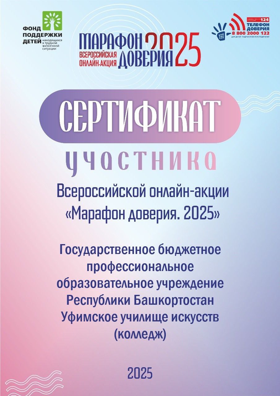 Уфимское училище искусств награждено Сертификатом участника Всероссийской онлайн-акции «Марафон доверия. 2025»