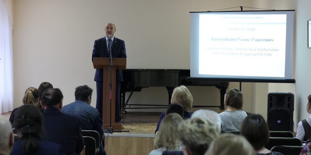 Участников семинара поприветствовали председатель Комитета Государственного Собрания – Курултая РБ по образованию, культуре, молодежной политике и спорту Р.М. Асадуллин, заместитель министра культуры РБ Р.Р. Алтынбаев, помощник советника Главы РБ по вопросам культуры и искусства И.И. Махмутова.